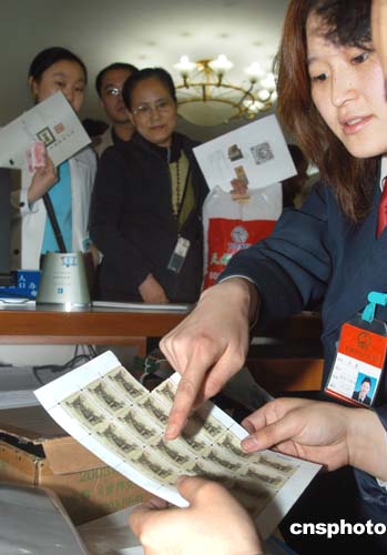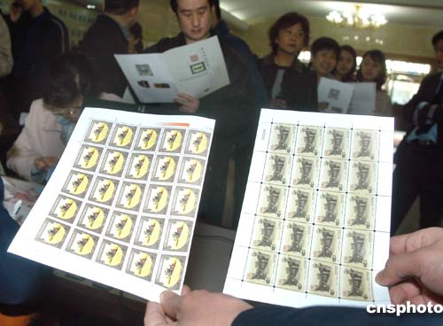 四月五日,新中國第一套地方版印花稅票《北京印花稅票之一北京胡同》在北京市各區(qū)縣地稅局向社會發(fā)售。此套印花稅票有九種面值,由北京市地方稅務局發(fā)行、國家郵政局郵票印制局印制,極具收藏價值。圖為北京市東城區(qū)地稅局工作人員展示新舊兩版印花稅票,圖右為新版印花稅票。作者:張宇
