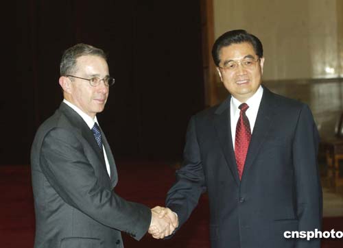 圖:胡錦濤會(huì)見(jiàn)哥倫比亞總統(tǒng)烏里韋