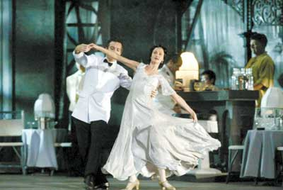 演出的開場很新鮮,一面虛擬的大幕徐徐拉開,巨大的銀幕上出現(xiàn)了當(dāng)年那部老電影《卡薩布蘭卡》的片頭,黑白鏡頭將觀眾帶回到半個(gè)世紀(jì)前發(fā)生一段浪漫故事的卡薩布蘭卡。因?yàn)槭鞘状魏铣膳啪,多?shù)演員沒有穿演出服。盡管如此,演員們的精彩表演還是贏得了在場記者的掌聲。(張學(xué)軍)