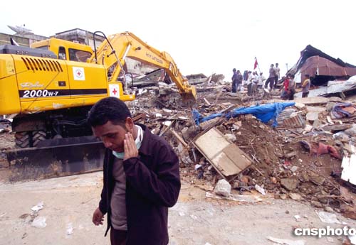 印度尼西亞蘇門答臘島海域發(fā)生大地震后,城里到處是一堆堆的廢墟,由于島上缺少挖土機、推土機等重型機械和電鉆、電鋸等設備,面對小山似的廢墟,人們赤手空拳,無能為力。作者:洪少葵