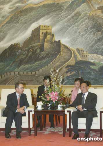 四月七日,中國(guó)全國(guó)人大常委會(huì)委員長(zhǎng)吳邦國(guó)在北京人民大會(huì)堂會(huì)見(jiàn)來(lái)訪的哥倫比亞總統(tǒng)烏里韋。作者:史利