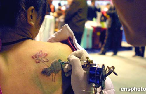 四月十一日,第七屆新疆美容美發(fā)化妝品博覽會(huì)在烏魯木齊開幕。韓國、日本及中國內(nèi)地的一百多家客商展出各類品牌產(chǎn)品千余種,涉及美容器械、美容美發(fā)用品、化妝品等。圖為參展企業(yè)推出的“美容紋身”受到烏魯木齊時(shí)尚女性的青昧,紛紛“以身相試”。作者:劉新