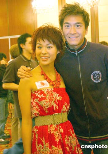 身穿露肩裝的胡杏兒與馬國明,近日出席無線劇集宣傳記者會。作者:譚達(dá)明