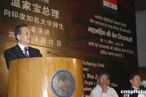 圖:溫家寶在印度德里理工大學(xué)發(fā)表演講