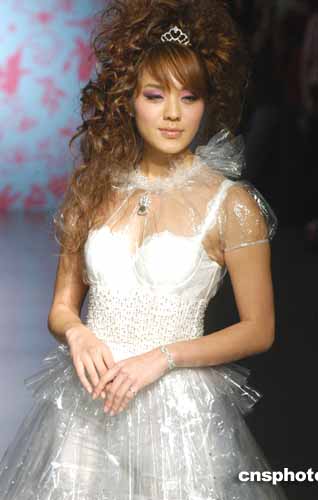 歌星官恩娜4月16日在香港為著名時(shí)裝設(shè)計(jì)師尹泰尉時(shí)裝演譯作品。作者:鄧慶樂