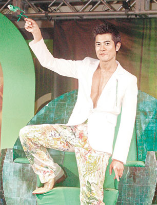 中新網(wǎng)4月19日電 郭富城將于下月舉行演唱會,昨日大會斥資八十萬舉行記者會,由于演唱會以“青鳥”作主題,出席嘉賓、歌迷均以綠色服飾示人,而城城則穿白西裝真空露點,坐在玻璃球上出場。