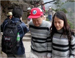 據(jù)悉,4月16日是黃山天都峰結(jié)束5年封山后,第一天向游客開放。很多游客當(dāng)天見到楊振寧夫婦身著情侶裝,手牽著手漫步走過排云亭。楊老先生的精神狀態(tài)很好,不時(shí)的指著遠(yuǎn)處的山峰景色給愛妻介紹。 (吳永泉)