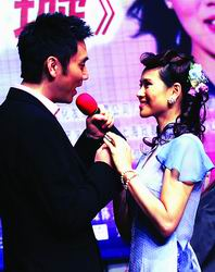 中新網(wǎng)4月20日電 昨天,上海話劇中心五樓排練廳,大型多媒體音樂劇《周璇》正在排周璇第一次代替王人美作為主演上臺的戲。主演伊能靜在現(xiàn)場非;钴S,鬼臉、小動作不斷。別以為她很輕松,其實,她評價這次演出比她這些年來的任何表演都難,連和男主角林依輪的感情戲,她都難以攻克,“我們的雙眼不能實質(zhì)性對視!”