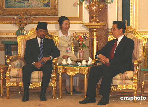 4月20日,中國國家主席胡錦濤與文萊達魯薩蘭國蘇丹哈桑納爾舉行會談。作者:李靜