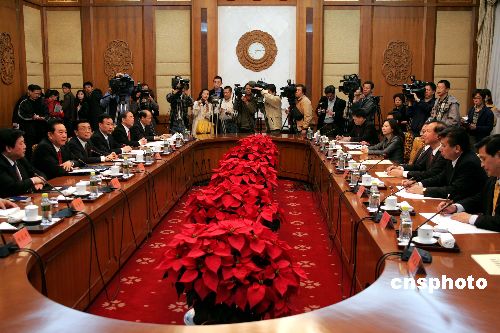 中共中央臺(tái)灣工作辦公室主任陳云林會(huì)見親民黨秘書長(zhǎng)秦金生。作者:毛建軍