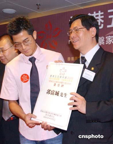 香港青年聯(lián)會等團體將于下月舉辦多項大型活動,慶祝五四青年節(jié)。香港明星郭富城(左)25日被委任為“香港五四青年榮譽大使”。作者:譚達明