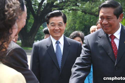 圖:胡錦濤與印尼總統(tǒng)蘇希洛舉行會(huì)談