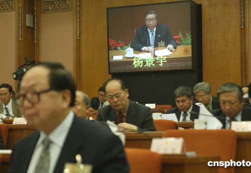 四月二十六日,全國(guó)人大法律委員會(huì)主任楊景宇在北京人民大會(huì)堂作《關(guān)于公務(wù)員法修改意見的報(bào)告》,提請(qǐng)十屆全國(guó)人大常委會(huì)第十五次會(huì)議審議。作者:史利