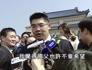 第三次來(lái)到南京中山陵,連戰(zhàn)的大公子連勝文,一路走來(lái)輕松,但被問(wèn)到是不是為情消瘦,連勝文把國(guó)父都搬出來(lái)當(dāng)作擋箭牌,表示今天來(lái)的地方很神圣,不適宜問(wèn)這種八卦話題。倒是第一次來(lái)到南京的弟弟連勝武趕快出面幫哥哥解圍,表示是因?yàn)楣ぷ鞣敝夭畔荨?object align="left" classid="clsid:D27CDB6E-AE6D-11cf-96B8-444553540000" codebase="http:///pub/shockwave/cabs/flash/swflash.cab#version=5,0,0,0" height="250" hspace="2" vspace="2" width="350">
