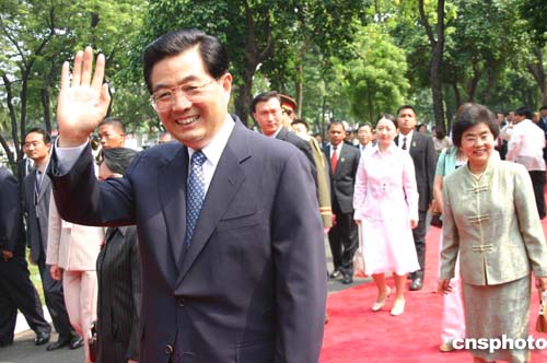 正在菲律賓進(jìn)行國事訪問的中國國家主席胡錦濤,四月二十七日與菲律賓總統(tǒng)阿羅約舉行會談,并共同出席了雙方多項(xiàng)合作協(xié)議的簽字儀式。圖為胡錦濤主席在阿羅約總統(tǒng)舉行的歡迎儀式上。作者:李靜