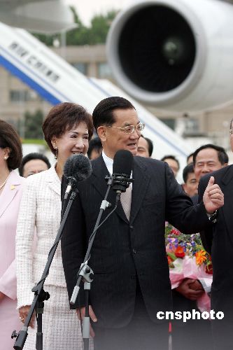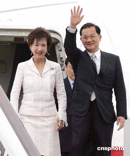 連戰(zhàn)說,本人今天應(yīng)中共中央及胡總書記的邀請,協(xié)同內(nèi)人以及中國國民黨三位副主席,率團(tuán)前來北京訪問,承蒙各位熱情接待,我們感到非常榮幸也非常感謝。