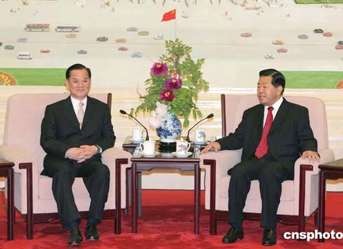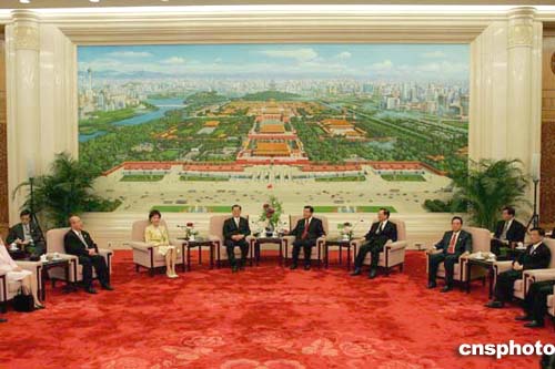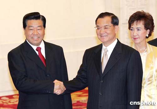 中新網(wǎng)4月28日電 中共中央政治局常委、全國(guó)政協(xié)主席賈慶林今日(28日)17時(shí)30分左右,在人民大會(huì)堂會(huì)見了連戰(zhàn)率領(lǐng)的中國(guó)國(guó)民黨大陸訪問團(tuán)一行。