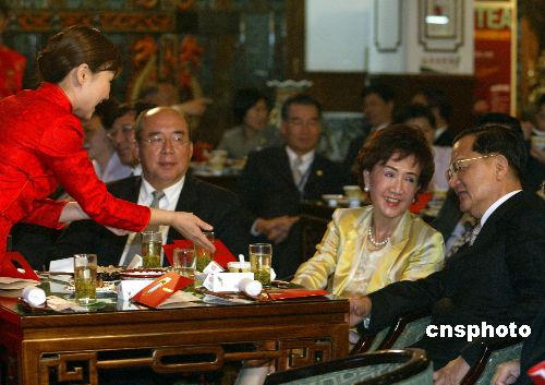 中新網(wǎng)4月28日電 中共中央政治局常委賈慶林28日晚在北京人民大會堂設(shè)宴款待中國國民黨主席連戰(zhàn)伉儷及中國國民黨大陸訪問團一行。