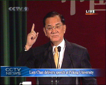 連戰(zhàn)說,我在這里要提出來,這是一個(gè)非常嚴(yán)肅的,同時(shí)是一個(gè)非常嚴(yán)重的扭曲,因?yàn)橹v這種話是從一個(gè)僵化的思維、冷戰(zhàn)內(nèi)戰(zhàn)時(shí)期的一個(gè)思考來看問題、來想問題,時(shí)間的確對他們來講過的太快了,讓他們留在二十世紀(jì)甚至于30年代、40年代、50年代,我們今天怎么不能夠重視當(dāng)前,怎么不能夠放眼當(dāng)前,來共同展望未來,來開創(chuàng)未來呢?