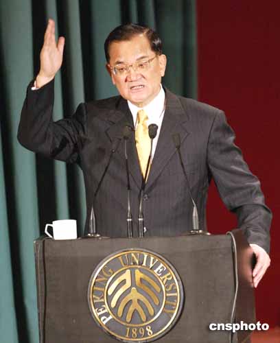 四月二十九日,中國國民黨主席連戰(zhàn)在北京大學(xué)發(fā)表演講,受到北大師生的熱烈歡迎。作者:廖文靜