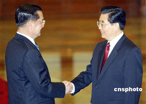 胡錦濤會(huì)見中國(guó)國(guó)民黨主席連戰(zhàn)