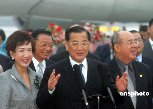 中新網(wǎng)5月1日電 中國(guó)國(guó)民黨主席連戰(zhàn)率國(guó)民黨大陸訪問(wèn)團(tuán)一行,在今日(1日)下午17時(shí)左右抵達(dá)上海浦東機(jī)場(chǎng),他在小雨中發(fā)表簡(jiǎn)短感言,連用兩次“非常地不敢當(dāng)”對(duì)在雨中久候的人們抱歉。