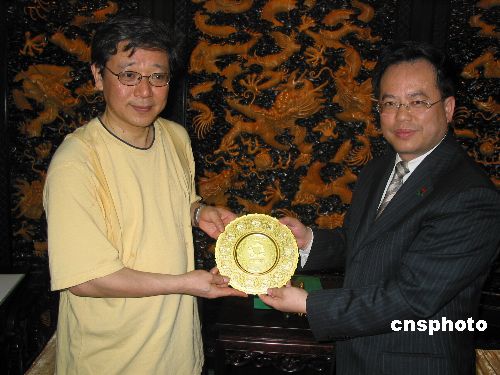 中新社東京五月一日電 今天中午十二點(diǎn)整,來(lái)自日本橫濱的公司職員近藤英男高興地從愛(ài)知世博會(huì)中國(guó)館館長(zhǎng)孫鋼手里接過(guò)一面紀(jì)念金盤(pán),他幸運(yùn)地成為中國(guó)館自三月二十五日開(kāi)館以來(lái)接待的第一百萬(wàn)位觀眾。
