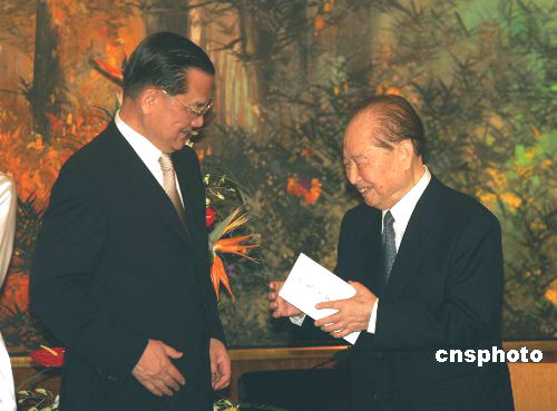此外,汪道涵先生也對(duì)連戰(zhàn)日前在北大演講時(shí)的兩句話表示很贊賞,一是連戰(zhàn)曾表示此次赴大陸訪問(wèn)是適應(yīng)世界潮流的變化,另一個(gè)則是適應(yīng)民意的要求。汪老說(shuō),他非常欣賞這兩句,并經(jīng)常以此激勵(lì)自己。