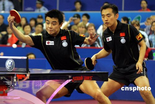 中新社上海五月五日電(劉立濤)在今晚結(jié)束的第四十八屆世乒賽男子雙打決賽中,中國(guó)選手孔令輝/王皓以四比一輕松戰(zhàn)勝德國(guó)選手波爾/許斯,為中國(guó)贏得了本次世乒賽的第二項(xiàng)冠軍。