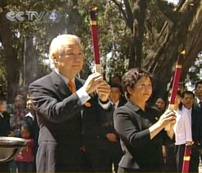 中新網(wǎng)5月6日電 親民黨主席宋楚瑜、陳萬(wàn)水夫婦今日(6日)上午,攜親民黨大陸訪問(wèn)團(tuán)一行在黃帝陵冢前上香祭拜。