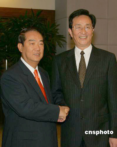 五月七日晚,中共中央政治局委員、上海市委書記陳良宇在上?萍拣^會見了親民黨主席宋楚瑜率領的親民黨大陸訪問團一行。作者:潘索菲
