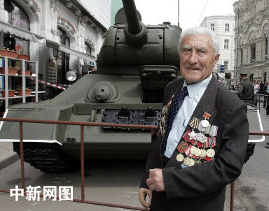 圖:二戰(zhàn)老兵與二戰(zhàn)坦克相逢在紅場