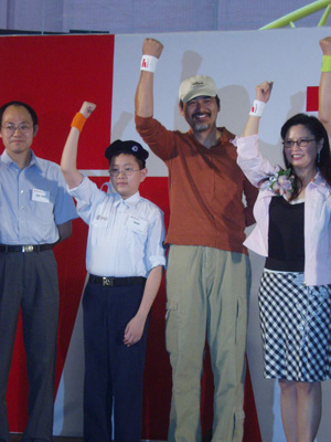 中新網(wǎng)5月9日電 據(jù)香港《大公報(bào)》報(bào)道,香港紅十字會(huì)昨日趁母親佳節(jié),舉辦“人道人人道”活動(dòng),希望喚起大眾對(duì)人道精神的關(guān)注,積極體現(xiàn)尊重生命。大會(huì)特別邀請(qǐng)了今次活動(dòng)的宣傳大使周潤(rùn)發(fā)出席,其它嘉賓尚有地中海貧血癥患者楊康鈿及零四年香港最高體育精神運(yùn)動(dòng)員蘇樺偉等!鞍l(fā)哥”昨日亦聯(lián)同其它嘉賓為“人道墻”揭開序幕,又齊戴上“人道彩色手環(huán)”。