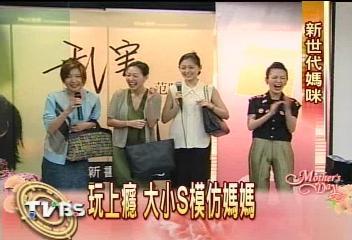 一向以公主自稱的大S,必定走在時尚尖端,怎么一副媽媽裝就出現(xiàn)在鏡頭前?原來是母親節(jié),大小S姊妹倆搞怪,把徐媽媽的衣服借來穿,穿就穿嘛!還把徐媽媽的身材消遣一番。藝人小S:“我媽這件衣服穿起來,是緊身衣耶!”