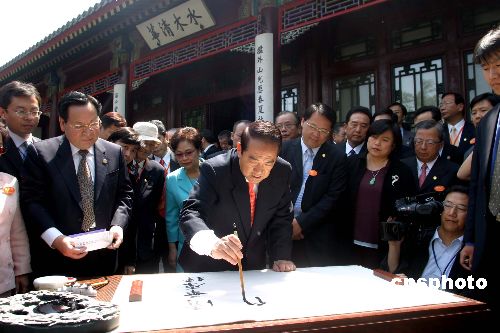 五月十一日上午,親民黨主席宋楚瑜在清華大學(xué)發(fā)表演講,演講結(jié)束后,親民黨主席宋楚瑜率親民黨大陸訪問團(tuán)清華大學(xué)的主要景點(diǎn)和經(jīng)典建筑并題寫“清華厚德自強(qiáng)不息”。作者:張勤