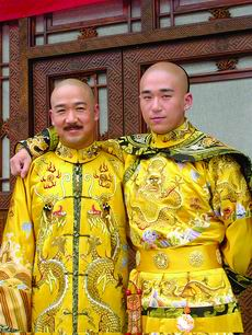 現(xiàn)場(chǎng)張國(guó)立、張默父子一起“黃袍加身”,各穿一身龍袍并肩亮相,父子倆還摟在一起合影,氣氛非常和諧!讹w龍倚天游》中飾演乾隆皇帝的張國(guó)立與飾演十四阿哥的張默再度出演父子!洱埛驱堷P非鳳》中張默則扮演光緒皇帝,張國(guó)立出演反派一號(hào)世鐸王爺。兩部劇同時(shí)開(kāi)拍,也讓父子倆有機(jī)會(huì)“同登皇位”。不過(guò)父子倆從未在一起接受采訪,張國(guó)立當(dāng)著兒子的面向來(lái)是嚴(yán)父模樣,但背地里卻喜歡講兒子的好話。(趙楠楠)
