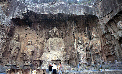 龍門(mén)石窟是我國(guó)著名的三大石刻藝術(shù)寶庫(kù)之一,位于洛陽(yáng)南郊12公里處的伊河岸邊,此處東西兩山對(duì)峙,伊水東流,望之若闋,故稱(chēng)伊闋。經(jīng)過(guò)自北魏至北宋400余年的開(kāi)鑿,至今仍存有窟龕2100多個(gè),造像10萬(wàn)余尊,碑刻題記3600余品,數(shù)量之多位于全國(guó)各大石窟之首。其氣魄之博大,蘊(yùn)涵之深邃,雕刻之精湛,堪稱(chēng)世界雕塑藝術(shù)寶庫(kù)中光彩奪目的奇葩。