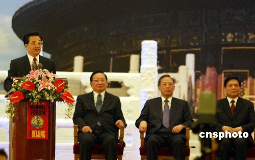 圖:胡錦濤在《財(cái)富》全球論壇開(kāi)幕式上作主題演講