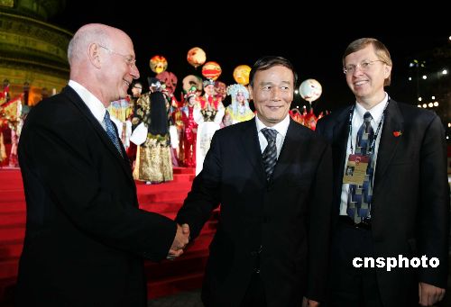 “在這美好的夜晚……我代表全體北京市民、向各位賓朋表示熱烈的歡迎……北京是一座歷史悠久、文化底蘊(yùn)深厚的古都,同時也是一座朝氣蓬勃、向現(xiàn)代化快速邁進(jìn)的城市……今天,一千五百萬勤勞和智慧的北京市民正在為實(shí)現(xiàn)新北京、新奧運(yùn)的戰(zhàn)略構(gòu)想而努力工作……北京將以更加積極的姿態(tài)走向世界……熱烈歡迎中外跨國公司、金融機(jī)構(gòu)、高科技企業(yè)現(xiàn)代服務(wù)業(yè)企業(yè)來京投資,共享中國機(jī)會、北京機(jī)會”,王岐山依照與會諸人座位上早已放置的一份精美講稿原字誦讀。