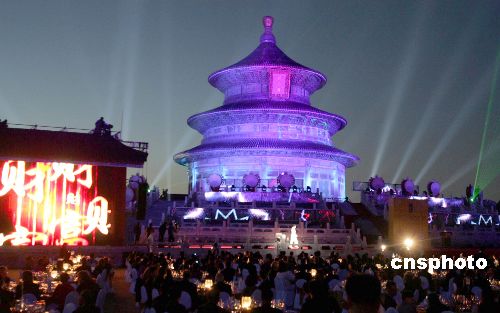 5月17日晚,北京市市長(zhǎng)王岐山在北京天壇祈年殿前盛宴款待出席2005北京《財(cái)富》全球論壇的嘉賓。作者:任晨鳴