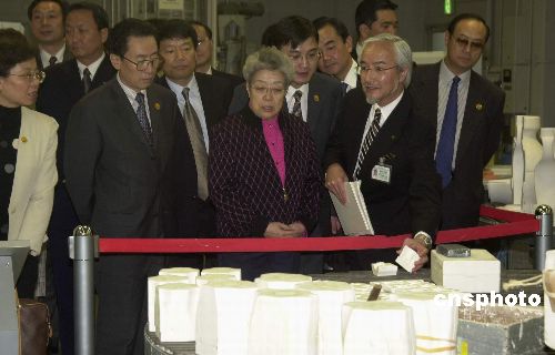 中國國務(wù)院副總理吳儀五月十八日在日本名古屋市參觀了著名的陶瓷工藝設(shè)施“則武工藝中心”。作者:王健