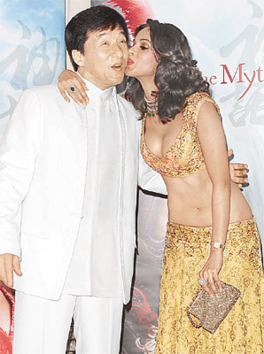 《神話》在影展中播出了大約一分多鐘的片段,當(dāng)中除了千軍萬馬的大場(chǎng)面,金喜善寬衣解帶為成龍療傷的場(chǎng)面也很有看頭。成龍?jiān)谟浾邥?huì)上表示雖然戲中和金喜善有感情戲,但堅(jiān)拒激吻,唯一的激情戲中,金喜善卻笑不停,浪費(fèi)了很多時(shí)間,也讓成龍忍不住問:“到底我這個(gè)樣子有什么好笑!”