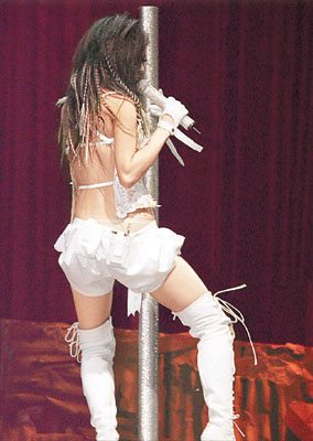 紅白斗音樂會吸引大批圈中人捧場,祖兒先化身一只十尺長蝴蝶獻(xiàn)唱慢歌,然后再變身“冶艷妖女”,身穿一件性感大露背低胸上衣、配超短熱褲,演唱梅艷芳的《冰山大火》時,攬住條柱大跳艷舞,更有意無意露出頗有看頭上圍,又忽然以手撫摸自己胸部,看得臺下觀眾熱血沸騰。