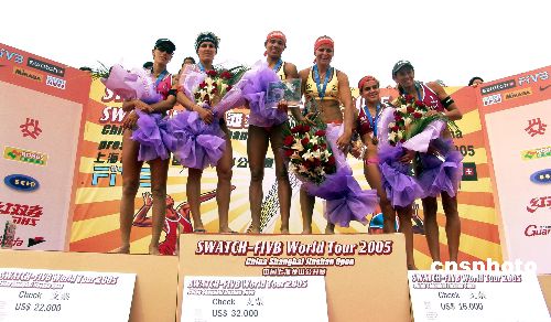 5月21日下午結(jié)束的Swatch-FIVB世界沙灘排球巡回賽首戰(zhàn)上海站的比賽中,巴西選手憑借嫻熟的技藝,包攬本屆比賽女子項目的前三名,無愧排球強國的稱號。作者:李佳佳