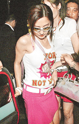 玩至凌晨四時(shí)多,蘭子先從正門步出,但發(fā)現(xiàn)記者后即退回場(chǎng)內(nèi),然后她拖著柏芝從后門出來,柏芝木無表情,問她有沒有吃生日蛋糕,她只淡淡地說:“吃啦!”便跟蘭子上乘的士離開。