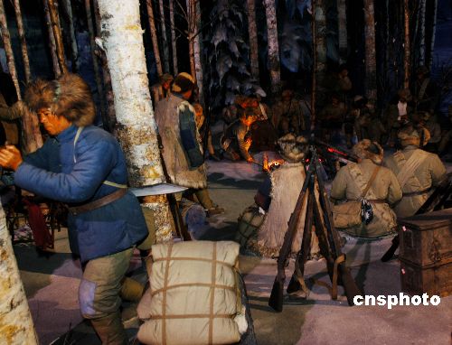 東北抗戰(zhàn)牽制了數(shù)十萬日本關(guān)東軍入關(guān)作戰(zhàn),有力地配合了全國(guó)的抗戰(zhàn)。圖為沈陽(yáng)“九·一八”紀(jì)念館內(nèi)表現(xiàn)東北抗日聯(lián)軍在深山老林艱苦抗戰(zhàn)的場(chǎng)景。作者:王麗南