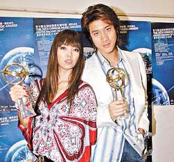 中新網(wǎng)5月24日電 據(jù)光華日報報道,第16屆金曲獎頒獎典禮將在28日舉行,Hit FM聯(lián)播網(wǎng)公布由網(wǎng)友票選的‘預(yù)測得獎’,緋聞情侶王力宏、張惠妹(阿妹)同時被選為‘金曲歌王、歌后’,F(xiàn).I.R.是最大遺珠。金曲頒獎人底定,若阿妹得歌后,將從頒獎人王力宏手中拿獎座,話題十足。