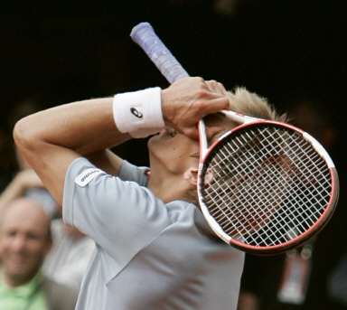中新網(wǎng)4月25日電 在昨天晚上結(jié)束的法網(wǎng)男單下半?yún)^(qū)首輪比賽中,美國老將阿加西苦戰(zhàn)5盤,以2比3(5比7/6比4/7比6/1比6/0比6)不敵芬蘭的資格賽選手涅米寧,慘遭淘汰出局。江南時(shí)報(bào)報(bào)道,這也是阿加西連續(xù)兩年在法網(wǎng)首輪出局。