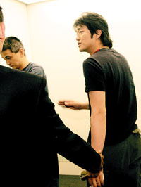 發(fā)布會原定晚上8點(diǎn)半開始,他幾乎踩著點(diǎn)兒到場。他的出現(xiàn)引得眾多攝影記者爭相拍照。一通閃光燈后,不等會議開始他就坐不住了,起身告退。記者尾隨他到電梯門口,看到鏡頭,李亞鵬的眼光起初有些閃躲,隨即無奈地正視著記者,神情十分復(fù)雜。