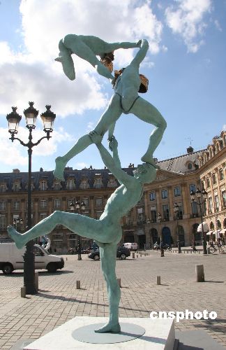 女藝術(shù)家安娜施羅米的一組名為“歐洲神話”的雕塑,目前正在巴黎極富盛名的旺多姆廣場(chǎng)展出。展覽引用一句名言“只有美能拯救世界”。圖為展覽中最為高大的雕塑作品,題為“奧林匹克精神:挑戰(zhàn)”。據(jù)主辦者稱,這件作品擬贈(zèng)給中國(guó),為2008年奧運(yùn)會(huì)增色。作者:鐘誠(chéng)